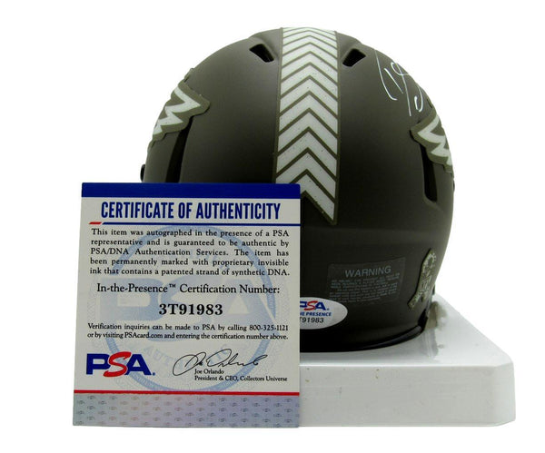 Darius Slay Autographed Mini Green Speed Salute to Service Football Helmet Philadelphia Eagles. This helmet is authenticated by PSA/DNA and includes their Tamper-proof Sticker and Certificate of Authenticity.