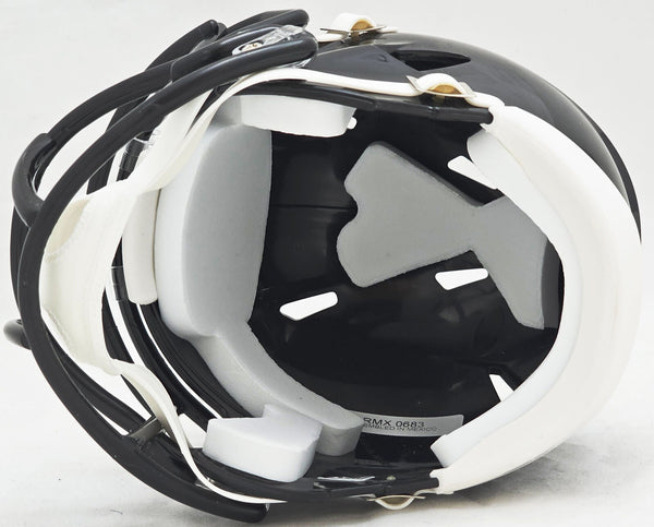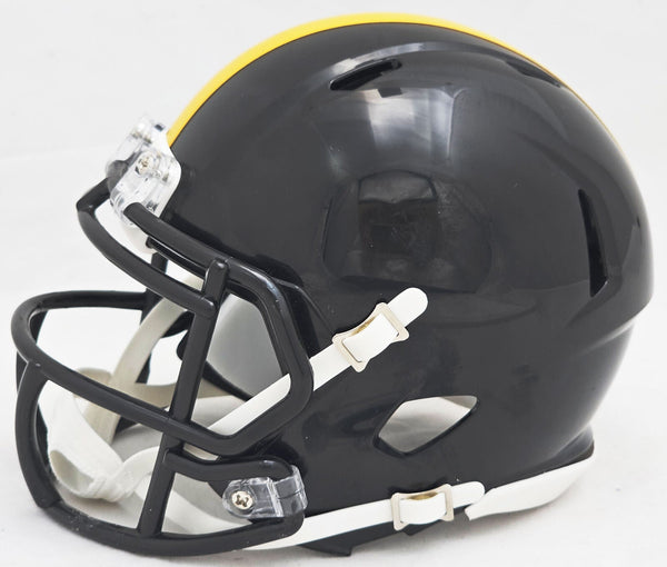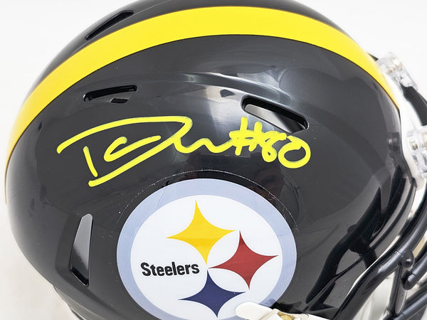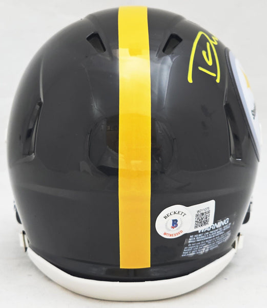 This is a Pittsburgh Steelers Black Speed Mini Helmet that has been hand signed by Darnell Washington. This item has been witnessed and certified authentic by Beckett Authentication (BAS) and comes with their tamper-proof witness sticker. Beckett Authentication has recently changed their physical certificate card policy where they no longer match their tamper-proof sticker with a physical certificate. A certificate can be printed on Beckett's website for the matching authentication number.