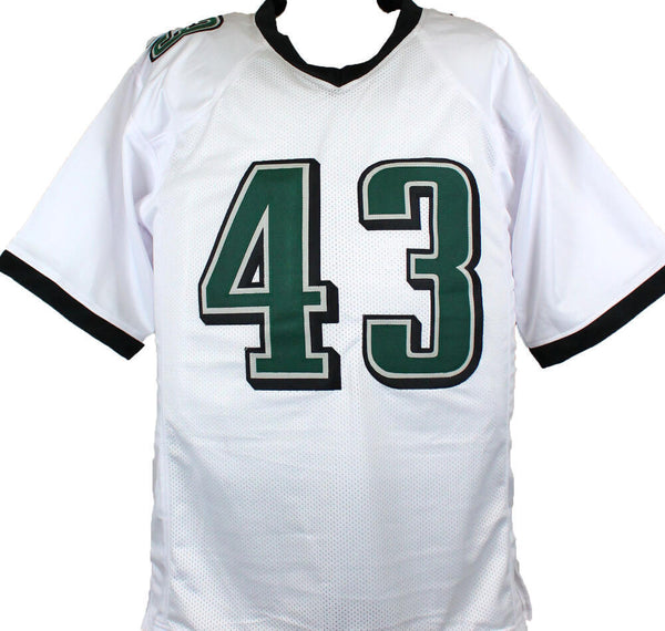 Darren Sproles Autographed White Pro Style Jersey-Beckett W Hologram *Silver Darren Sproles of the Philadelphia Eagles. Autographed Black Pro Style Jersey With Beckett Witnessed Authentication THIS IS NOT AN NFL JERSEY. THIS HAS NO TAGS, NO LOGOS, NO EMBLEMS. This is a Hand Autographed Jersey of Darren Sproles. It comes with Beckett # hologram and a QR code for verification. You can view this item on the Beckett website. It was signed either at a public autograph appearance or a Private Signing. This is a stock photo of the item. Although you may not receive this exact item, the item you receive is virtually identical and brand new in great shape. Jersey size is XL. .