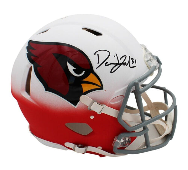 An Arizona Cardinals Custom Speed Authentic Hydro NFL Helmet hand signed by David Johnson. The item and signature are in excellent condition. David Johnson is a NFL Running back for the Arizona Cardinals. He was drafted 3rd round in the 2015 NFL Draft. In college David played for Northern Iowa. He is a Pro Bowler, & a 2016 First Team All Pro. AUTHENTICATION: The item is accompanied by a Certificate of Authenticity - Serial Numbered and Databased Hologram - Picture of David from the Signing -