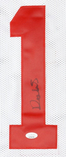 Custom on-field style jersey. Everything is sewn on, size XL. Has been hand-signed by Deebo Samuel.The autograph includes an official James Spence Authentication (JSA) hologram and QR Code Card for authenticity purposes. The signing of this item was witnessed by JSA.Authentication: JSA QR Code CardAll Items are brand new unless otherwise stated. On all signed jerseys up for auction stock images are used in these listings. ALMOST ALL OUR SIGNED JERSEYS ARE ADULT XL unless otherwise noted (It's the preferred size for autograph collectors for display purposes) The exact item you will receive will be the Same player as the one pictured, but may have the signature in different spots, be signed in a different color paint pen, and have different inscriptions than the photo shown. WE ARE NOT A WHOLESALER; WE TRY TO OFFER LOW PRICED SIGNED JERSEYS TO OUR CUSTOMERS SO EVERYONE GETS A FAIR CHANCE AT LOW PRICES ON QUALITY ITEMS. If you're buying multiple items, please don't pay until you purchase all your auction items for that week (Thursday thru Sunday) We'll send you an invoice when all our weekly auctions are over on either Saturday or Sunday evening at 10:30 pm depending on how many items we have listed that week. We will adjust your shipping at this point. We use a Pack & Ship to send out our Auction items and they charge us $13. for the 1st item & $3. for each additional item. Thank you & Happy Bidding!Custom on-field style jerseys are a more affordable option for autograph seekers. These jerseys do not have any brand name or tags and are made in the Philippines. They feature stitched on names and numbers and are made to look very similar to the on-field jerseys that the players wear. These custom jerseys are very commonly used in the memorabilia industry. ALL INTERNATIONAL SHIPPING ON THESE ITEMS IS DONE THROUGH THE eBAY GLOBAL SHIPPING PROGRAM. PLEASE BE AWARE OF THESE COSTS BEFORE BIDDING.