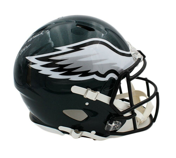 A Philadelphia Eagles Speed Authentic NFL Helmet hand signed by Dick Vermeil. The item and signature are in excellent condition. In addition to signing his name, Dick also inscribed "HOF 2022" on the item. Dick had a very successful Football Coaching career. He lead teams like the Philadelphia Eagles, St. Louis Rams, Kansas City Chiefs, UCLA Bruins with losing records to victory, winning the Rose Bowl, Playoffs & Super Bowls. He has been Coach of the Year several times and was inducted into the Pro Football Hall of Fame in 2022. AUTHENTICATION: The item is accompanied by a Dick Vermeil Exclusive Certificate of Authenticity - Dick Vermeil Exclusive Serial Numbered & Databased Hologram - Picture of Dick from the signing