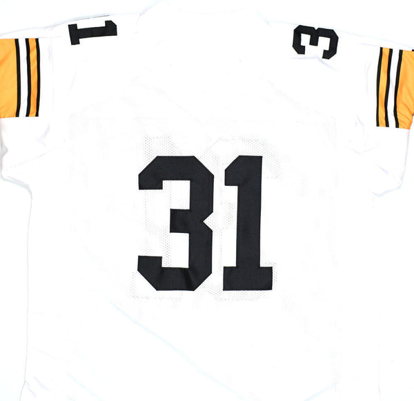 Donnie Shell Autographed White Pro Style Jersey w/HOF-Beckett W Hologram *Silver Donnie Shell Signed / Autographed White Pro Style Jersey With HOF Inscription and Beckett Witnessed Authentication THIS IS NOT AN NFL JERSEY. THIS HAS NO TAGS, NO LOGOS, NO EMBLEMS. This is a Hand Autographed Jersey of Donnie Shell. This is Custom Made (Non Name Brand) Authentic Style (Stitched Letters and Numbers). This item has a Beckett Witnessed Authentication, which Comes with a Beckett #'ed hologram and a QR code for verification. You can view this item on the Beckett website. It was signed either at a public autograph appearance or a Private Signing. This is a stock photo of the item. Although you may not receive this exact item, the item you receive is virtually identical and brand new in great shape. Jersey size is XL.