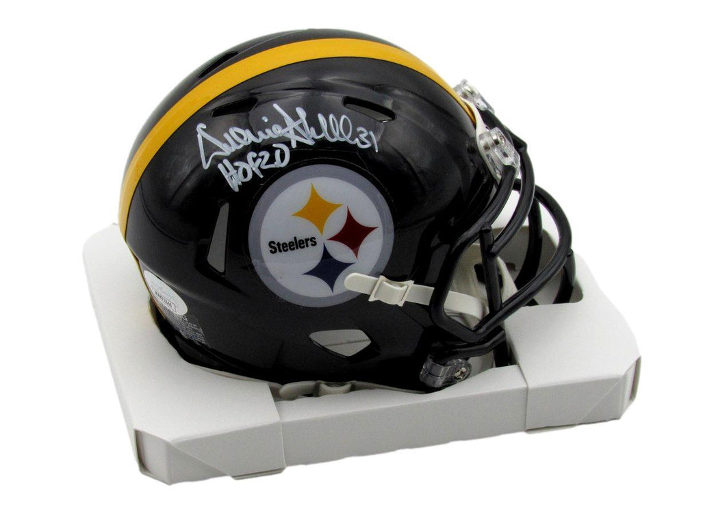 Donnie Shell HOF Autographed/Inscribed "HOF 20" Black Speed Mini Football Helmet Pittsburgh Steelers. This helmet is authenticated by JSA and includes their Tamper-proof Hologram Sticker and Certificate of Authenticity.
