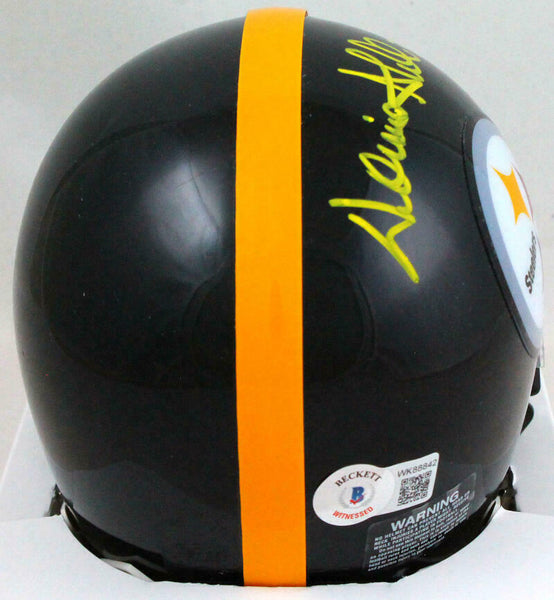 Donnie Shell Autographed Pittsburgh Steelers Mini Helmet w/ HOF- Beckett W Hologram *Yellow This is a hand autographed Helmet of Donnie Shell of the Pittsburgh Steelers inscribed HOF. This is a Riddell Mini Football Helmet. This item has a Beckett Witnessed Authentication, which comes with a numbered hologram and a generic Beckett Certificate of Authenticity. You can view this item on the Beckett Authentication website. It was signed either at a public autograph appearance or a private signing. This is a stock photo of the item. Although you may not receive this exact item, the item you receive is virtually identical and brand new in great shape.