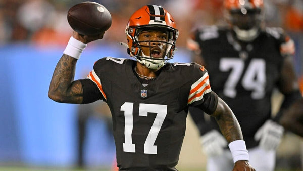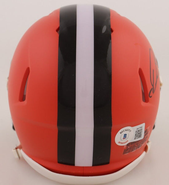 Dorian Thompson-Robinson, quarterback for the Cleveland Browns, has hand signed this Browns Riddell Speed mini helmet at a private signing. This item is authenticated by Beckett Authentication Services and was signed in the presence of one of their representatives. Their tamper-evident hologram featuring a QR code and serial number is on the item. The authenticity can be verified online by entering the serial number or scanning the QR code.Item pictured may not be the exact item you will receive. It will be similar quality, and we guarantee your satisfaction.