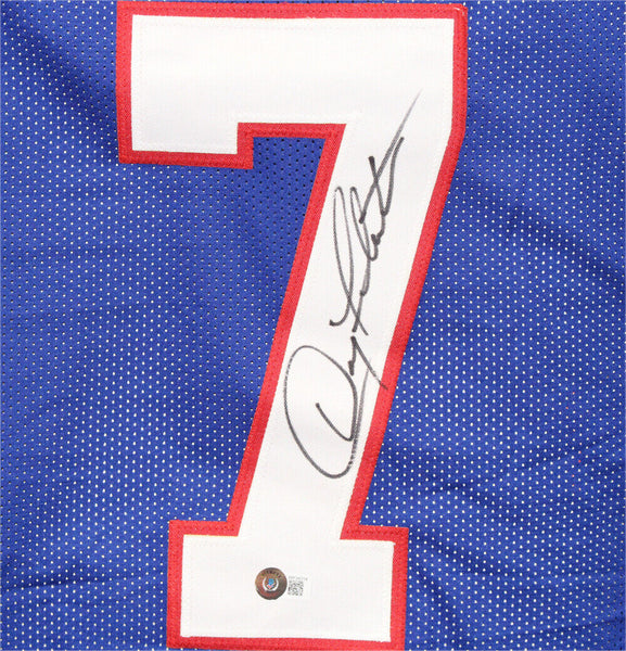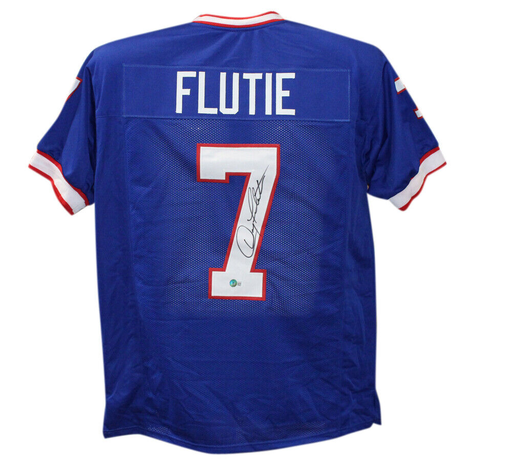 Doug Flutie Autographed/Signed Pro Style Blue XL Jersey Beckett 39313 The number in the listing title is just an inventory sku for our records and is not the authentication number. The item pictured is a stock photo unless otherwise noted. This is a custom pro style blue XL jersey with sewn on name and numbers that was personally autographed by Doug Flutie. Includes a certificate of authenticity from Beckett Authentication Services (BAS) and Denver Autographs.