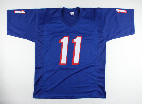 Custom on-field style jersey with everything sewn on, size XL. Jersey has been hand-signed in black felt-tip pen by Drew Bledsoe. The lot / autograph(s) includes an official James Spence Authentication (JSA) hologram and QR Code card for authenticity purposes. The signing of this item was witnessed by JSA.Authentication: JSA QR Code card