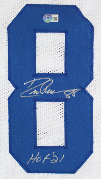 This Autographed White Pro Style Jersey with the inscription of "HOF 21" has been Personally Signed by Drew Pearson of the Dallas Cowboys. This item is 100% Authentic to include a hologram by Beckett Authentication Services. This item will come with the new Beckett Authentication hologram that has a scannable QR code rather than the traditional COA. If you would like to have a COA, you are welcome to reach out to Beckett for a printed certification once you receive your item. This is a BAS Witnessed Protection Program item which means a Beckett Authentication Service representative was present when this item was being signed. This is a stock item. We conducted an autograph signing with Drew Pearson and we have several of these available. The one you will receive will be of equal quality to the one pictured. This item can be verified through BAS Witnessed. This is a X-Large sized, non-branded, custom-stitched Jersey.