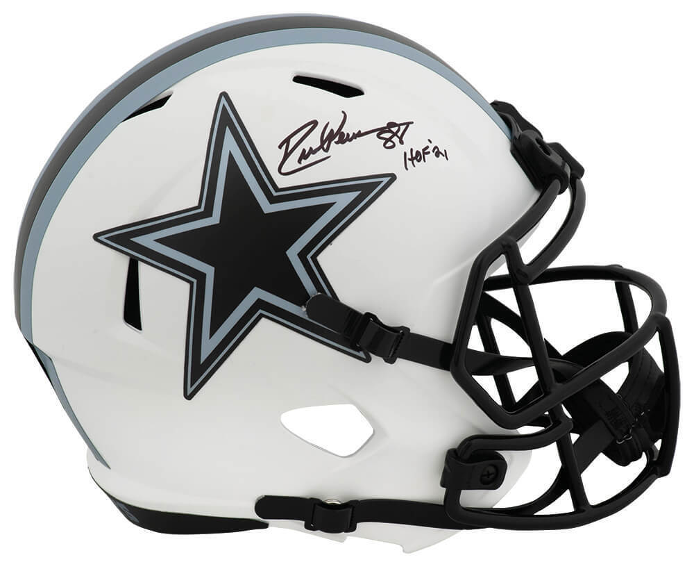Drew Pearson signed Dallas Cowboys Lunar Eclipse Riddell full size speed replica helmet with 'HOF 21' inscription. Item comes with a Schwartz Sports Memorabilia tamper-proof numbered hologram and Certificate of Authenticity which can be verified online.