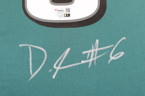 This Autographed Green Nike Game Jersey has been Personally Signed by DeVonta Smith of the Philadelphia Eagles. This item is 100% Authentic to includes a numbered hologram by Fanatics. We conducted an autograph signing with DeVonta Smith where multiples of the same item were signed. While the photographs are representative of this item, the size, placement and strength of the signature may vary. Each item is hand signed, therefore, each autograph is unique. This item can be verified through Fanatics. This is a Large sized Jersey.