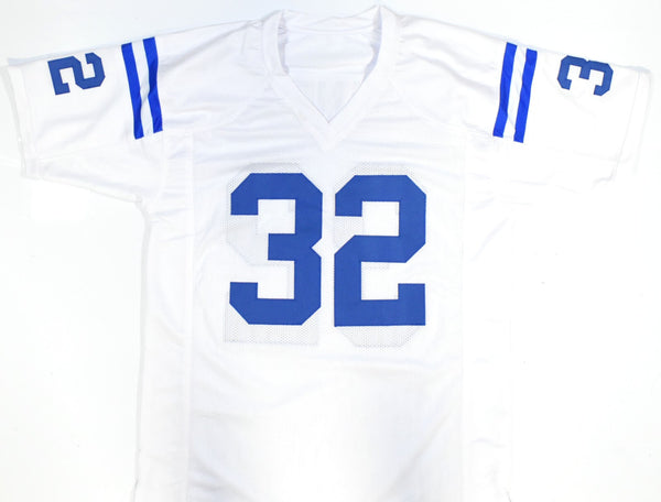 THIS IS NOT AN NFL JERSEY. THIS HAS NO TAGS, NO LOGOS, NO EMBLEMS. This is a hand autograph of Edgerrin James of the Indianapolis Colts on a Custom made (non-name brand) Authentic Style Jersey with stitched letters and numbers. This item has a Beckett Witnessed Authentication, which comes with a Beckett numbered sticker hologram and a QR Code for verification. You can view this item on the Beckett Authentication website. It was signed either at a public autograph appearance or a private signing. This is a stock photo of the item. Although you may not receive this exact item, the item you receive is virtually identical and brand new in great shape. Jersey size is XL. THIS IS NOT AN NFL JERSEY. THIS HAS NO TAGS, NO LOGOS, NO EMBLEMS. This is a hand autograph of Edgerrin James of the Indianapolis Colts on a Custom made (non-name brand) Authentic Style Jersey with stitched letters and numbers. This item has a Beckett Witnessed Authentication, which comes with a Beckett numbered sticker hologram and a QR Code for verification. You can view this item on the Beckett Authentication website. It was signed either at a public autograph appearance or a private signing. This is a stock photo of the item. Although you may not receive this exact item, the item you receive is virtually identical and brand new in great shape. Jersey size is XL.
