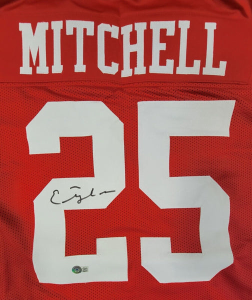 ELIJAH MITCHELL AUTOGRAPHED SIGNED PRO STYLE CUSTOM XL JERSEY WITH BECKETT QR HOLOGRAM COATHIS MEANS THE JERSEY WAS SIGNED WITH A BECKETT REPRESENTATIVE PRESENT SO YOU CAN BE 100% CERTAIN ITS THE REAL THING.