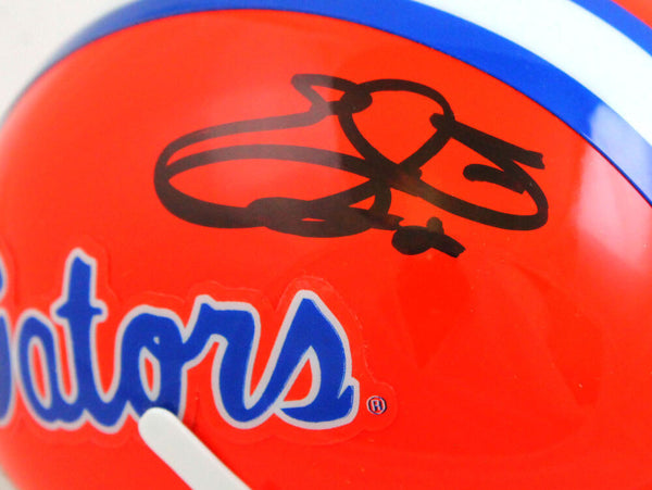 Emmitt Smith Autographed Florida Gators Schutt Mini Helmet-Beckett W Hologram *Black This is a Hand Autographed Mini Helmet of Emmitt Smith of The University of Florida. This is a Schutt Football Mini Helmet. This item has a Beckett Witness Authentication, which Comes with a Beckett #'ed Hologram and a QR code for verification. You can view this item on the Beckett website, it shows when and where the item was signed. It was signed either at a public autograph appearance or a Private Signing. This is a stock photo of the item. Although you may not receive this exact item, the item you receive is virtually identical and brand new in great shape.