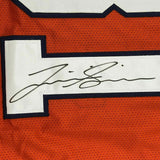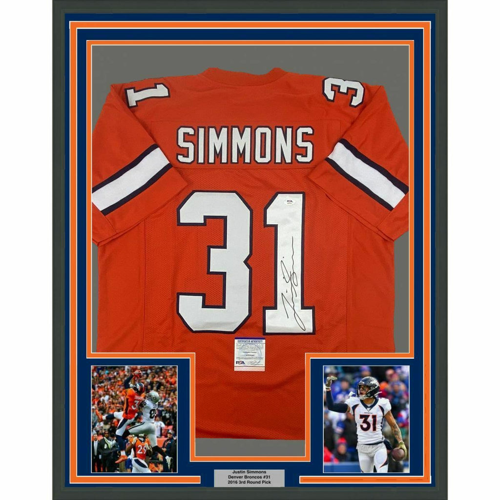 FRAMED Autographed/Signed JUSTIN SIMMONS 33x42 Retro Orange Jersey PSA COA