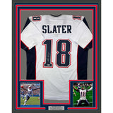 Framed Autographed/Signed Matthew Slater 33x42 New England White Jersey BAS COA The item is professionally framed and matted with two 5x7 photos, measures 35 inches by 39 inches and is ready to be hung in your man cave! Photo and matting requests can be made.