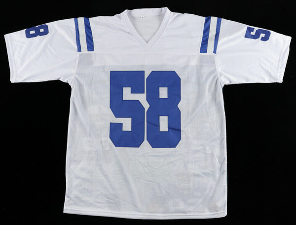 Custom on-field style jersey. Everything is sewn on, size XL. Hand-signed and inscribed by Gary Brackett. The lot / autograph(s) includes an official James Spence Authentication (JSA) hologram and matching COA for authenticity purposes. The signing of this item was witnessed by JSA.Authentication: JSA COA