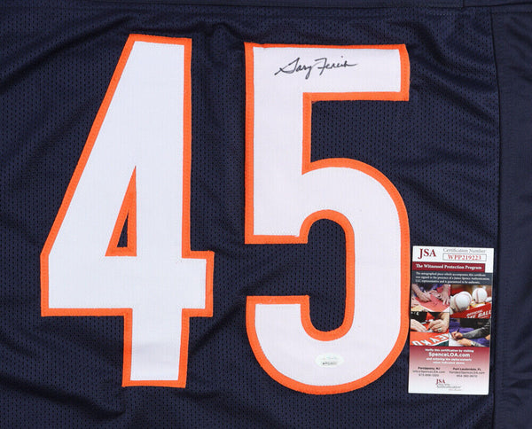 Custom on-field style jersey. Everything is sewn on, size XL. Hand-signed in black felt-tip pen by Gary Fencik. The lot / autograph(s) includes an official James Spence Authentication (JSA) hologram and matching COA for authenticity purposes. The signing of this item was witnessed by JSA.Authentication: JSA COA