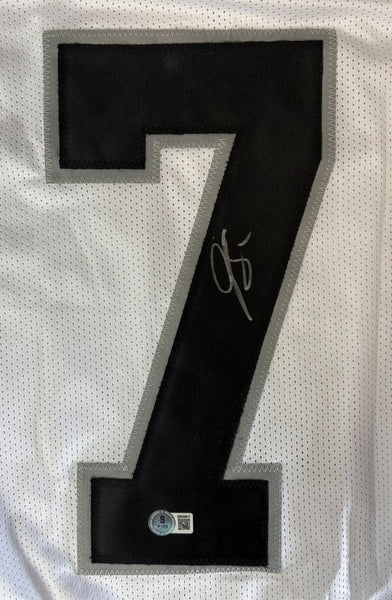 Featured is a Geno Smith signed custom football jersey. This jersey has been hand signed by Smith and comes with the Beckett hologram and certificate of authenticity. This jersey features professionally sewn letters and numbers and is size XL. This jersey has no team tags or emblems and is intended as a sports collectible. This jersey would make a great addition to any sports memorabilia collection!. SPECIFICATIONS Autographed By: Geno Smith Team: Las Vegas Raiders Sport: Football Authentication: Beckett Grading Services