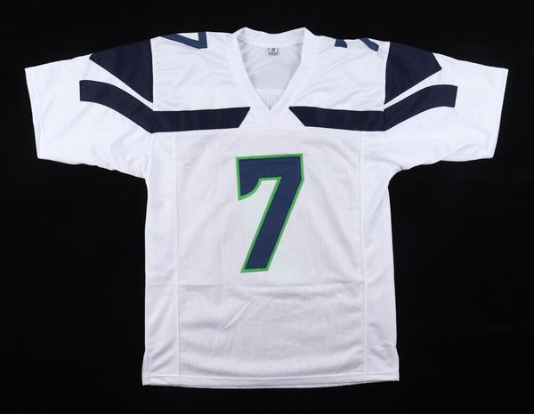 Custom on-field style football jersey. Everything sewn on, size adult XL. Hand-signed by Geno Smith.The lot / autograph(s) includes an official Players Ink Authentication hologram for authenticity purposes.Authentication: PIA Hologram