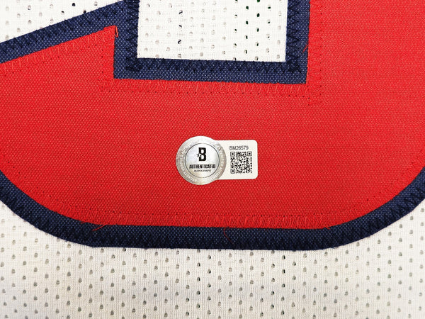 This is a White Jersey that has been hand signed by Tank Dell. This is a custom jersey with no name brand. The approximate size is XL. It has nice sewn in name and numbers. This item has been certified authentic by Beckett Authentication (BAS) and comes with their tamper-proof QR Code hologram.