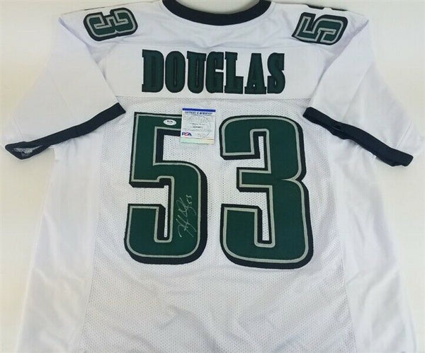 Custom on field style jersey with everything sewn on, size XL. Jersey has been hand-signed in silver paint pen by Hugh Douglas. The autograph includes an official PSA/DNA hologram and matching COA for authenticity purposes.Authentication: PSA COA