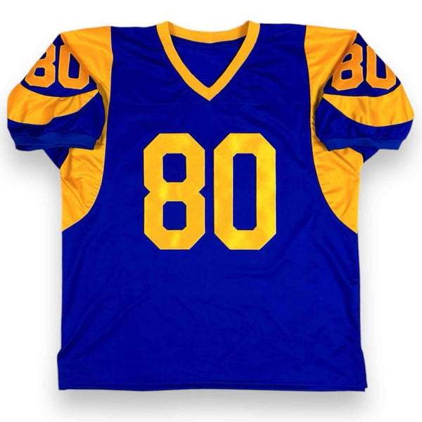 This signed item is brand new without tags or logos. This custom jersey is sewn in a size Large / XL. All the letters and numbers are sewn on! This item will make a great gift or a great addition to any collection at an AFFORDABLE PRICE! ATHLETE: Isaac Bruce with "HOF 20" Inscription ITEM: Custom Sewn Jersey AUTHENTICATION: This item comes with a Beckett Authentication serial #'ed hologram affixed to the item. To ensure authenticity, the hologram can be reviewed online. This process helps to ensure that the product purchased is authentic and eliminates any possibility of duplication or fraud. NOTE: All of our autographed jerseys are custom jerseys, unless otherwise noted. Our custom jerseys are NON-BRANDED, have NO logos, NO tags, NO patches, NO emblems. All letters and numbers are SEWN-ON. The non-branded jerseys are made specifically for the player(s) to sign, for collectible purposes.