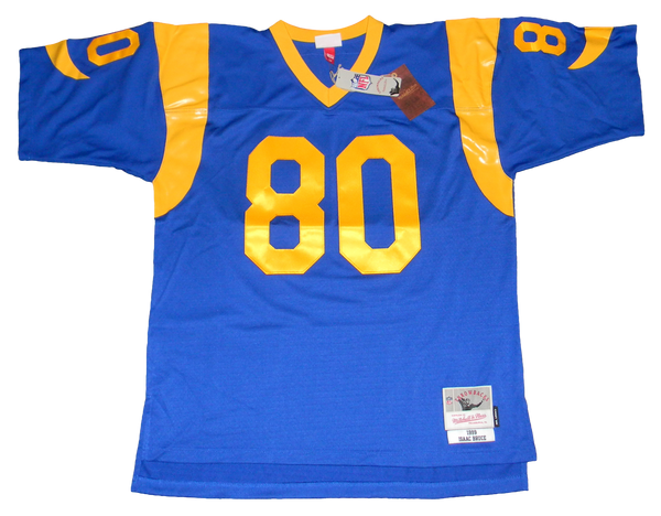 Isaac Bruce, former Hall of Fame wide receiver for the St. Louis Rams, has hand signed this Mitchell & Ness jersey at a private signing. He included the inscription "HOF 20". Jersey is new with tags attached and all letters/numbers are sewn-on. This item comes with a certificate of authenticity (COA) from Beckett Authentication Services and was signed in the presence of one of their representatives. You will receive a serial-numbered COA along with a matching serial-numbered sticker on the jersey. The authenticity can be verified online by entering the serial number.Item pictured may not be the exact item you will receive. It will be similar quality, and we guarantee your satisfaction.