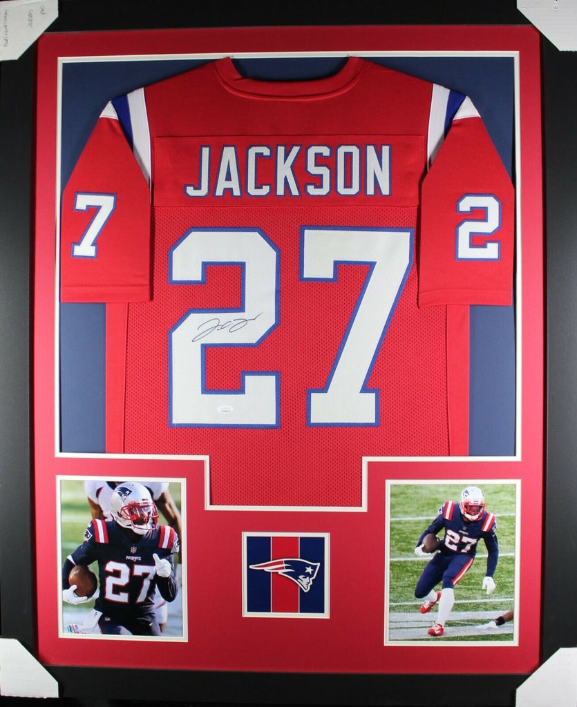 J.C. JACKSON AUTOGRAPHED & PROFESSIONALLY FRAMED PRO-STYLE JERSEY(Occasionally our own stock pictures are used at times due to quantity of framing, all frames will look identical as the one pictured)Every framed autographed jersey is accompanied with a tamper-proof hologram on the signed part of the jersey from one of the main authenticators in the industry (JSA, Beckett, PSA, etc.) and can be verified on their corresponding websites to prove authenticity.THE FRAMED JERSEY MEASURES 35"x 44" & COMES WITH THE FOLLOWING:-UV Protected Acrylic-Triple Acid Free Team Colored Matting-2 High Quality 8"x10" Photos-Team Logo