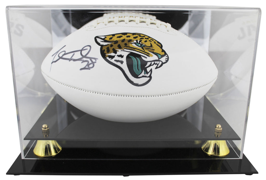This Autographed White Panel Logo Football W/ Uv Mirrored Back Acrylic Display Case has been Personally Signed by Fred Taylor of the Jacksonville Jaguars. This item is 100% Authentic to include a hologram by Beckett Authentication Services. This item will come with an affixed Beckett Authentication Services (BAS) authentication sticker, which includes a scannable QR code to verify authenticity. Please note that Beckett no longer provides serial-numbered COA cards, and the attached BAS sticker will serve as the complete authentication for this item. This is a BAS Witnessed Protection Program item which means a Beckett Authentication Service representative was present when this item was being signed. We conducted an autograph signing with Fred Taylor where multiples of the same item were signed. While the photographs are representative of this item, the size, placement and strength of the signature may vary. Each item is hand signed, therefore, each autograph is unique. This item can be verified through BAS Witnessed.
