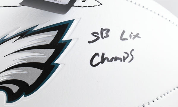 This is a hand autographed Football of Jalen Carter of the Philadelphia Eagles. This is a Philadelphia Eagles Franklin Logo Football. Inscribed SB Champs. This item has a Beckett Witnessed Authentication, which comes with a numbered hologram and a QR code for verification. You can view this item on the Beckett website, it shows when and where the item was signed. It was signed either at a public autograph appearance or a private signing. This is a stock photo of the item. Although you may not receive this exact item, the item you receive is virtually identical and brand new in great shape. This is a hand autographed Football of Jalen Carter of the Philadelphia Eagles. This is a Philadelphia Eagles Franklin Logo Football. Inscribed SB Champs. This item has a Beckett Witnessed Authentication, which comes with a numbered hologram and a QR code for verification. You can view this item on the Beckett website, it shows when and where the item was signed. It was signed either at a public autograph appearance or a private signing. This is a stock photo of the item. Although you may not receive this exact item, the item you receive is virtually identical and brand new in great shape.