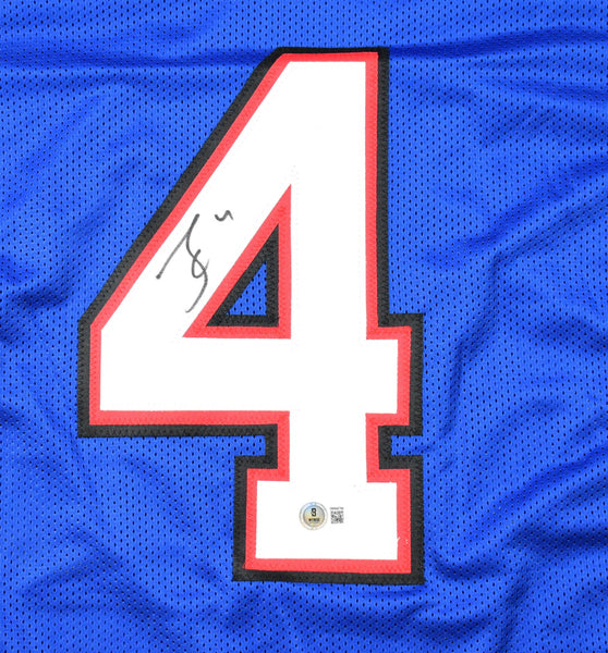 THIS IS NOT AN NFL JERSEY. THIS HAS NO TAGS, NO LOGOS, NO EMBLEMS. This is a hand autograph of James Cook of the Buffalo Bills on a Custom made (non-name brand) Authentic Style Jersey with stitched letters and numbers. This item has a Beckett Witnessed Authentication, which comes with a Beckett numbered sticker hologram and a QR Code for verification. You can view this item on the Beckett Authentication website. It was signed either at a public autograph appearance or a private signing. This is a stock photo of the item. Although you may not receive this exact item, the item you receive is virtually identical and brand new in great shape. Jersey size is XL. THIS IS NOT AN NFL JERSEY. THIS HAS NO TAGS, NO LOGOS, NO EMBLEMS. This is a hand autograph of James Cook of the Buffalo Bills on a Custom made (non-name brand) Authentic Style Jersey with stitched letters and numbers. This item has a Beckett Witnessed Authentication, which comes with a Beckett numbered sticker hologram and a QR Code for verification. You can view this item on the Beckett Authentication website. It was signed either at a public autograph appearance or a private signing. This is a stock photo of the item. Although you may not receive this exact item, the item you receive is virtually identical and brand new in great shape. Jersey size is XL.