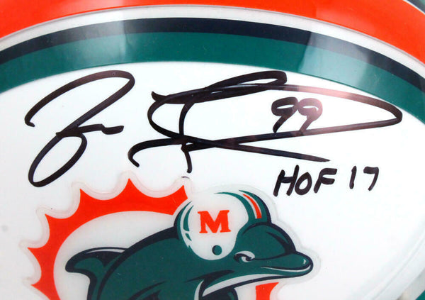 Jason Taylor Autographed Miami Dolphins 97-12 Mini Helmet w/HOF-Beckett W Hologram *Black This is a hand autographed Helmet of Jason Taylor of the Miami Dolphins. This is a Riddell Throwback 97-12 Football Mini Helmet. Inscribed with HOF. This item has a Beckett Witness Authentication, which comes with a numbered sticker hologram and a QR code for verification. You can view this item on the Beckett website, it shows when and where the item was signed. It was signed either at a public autograph appearance or a private signing. This is a stock photo of the item. Although you may not receive this exact item, the item you receive is virtually identical and brand new in great shape.