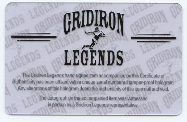 Custom on-field style jersey. Everything is sewn on, size XL. Hand-signed in black felt-tip pen by Jerricho Cotchery. The Gridiron Legends hand signed item accompanied by this Certificate of Authenticity has been affixed with a unique serial numbered tamper-proof hologram. Any alterations of this hologram deem the authenticity of this item null and void. The autograph on this item was witnessed in person by a Gridiron Legends representative.Authentication: Gridiron Legends COA