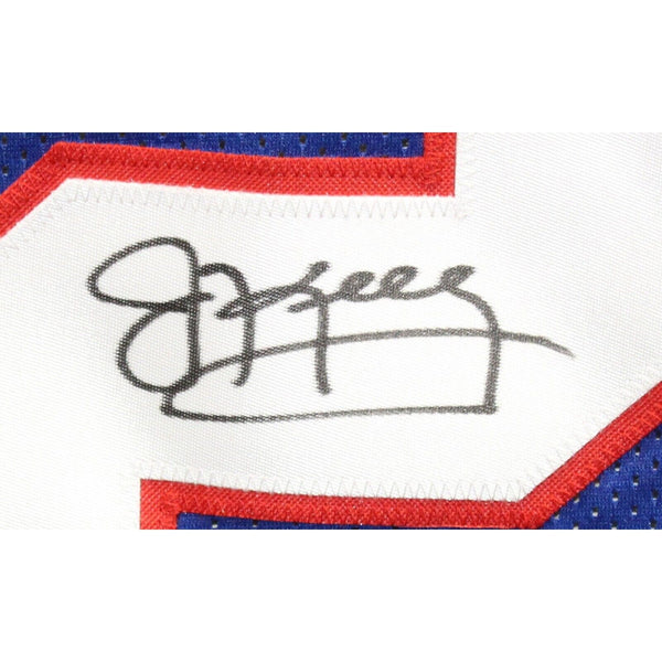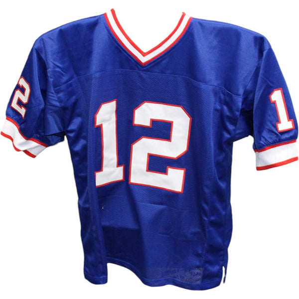 Jim Kelly Autographed/Signed Pro Style Blue Jersey JSA 42970 The number in the listing title is just an inventory sku for our records and is not the authentication number. The item pictured is the exact item you will receive, please see photos for condition. This is a Pro Style Blue Jersey that was personally autographed by Jim Kelly. Includes a certificate of authenticity from James Spence Authentication (JSA) and Denver Autographs.