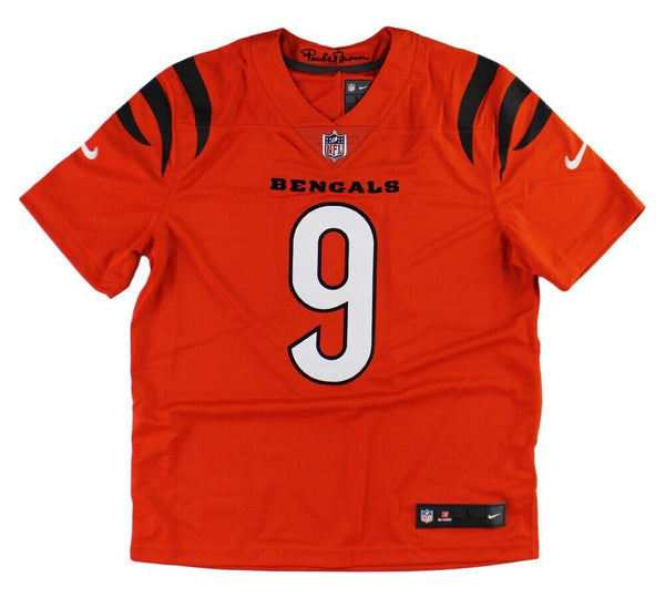 A Cincinnati Bengals Nike Limited Orange NFL Jersey hand signed by Joe Burrow. The item and signature are in excellent condition. Joe was Drafted into the NFL in 2020 Round 1. Joe was CFP National Champion in 2019 and received the Heisman Trophy in 2019. AUTHENTICATION: The item is accompanied by a Fanatics Authentic Serial Numbered and Databased Hologram