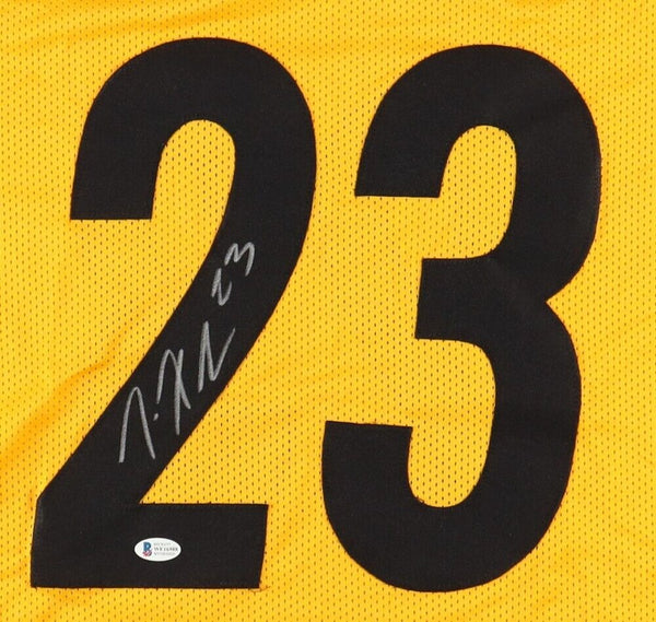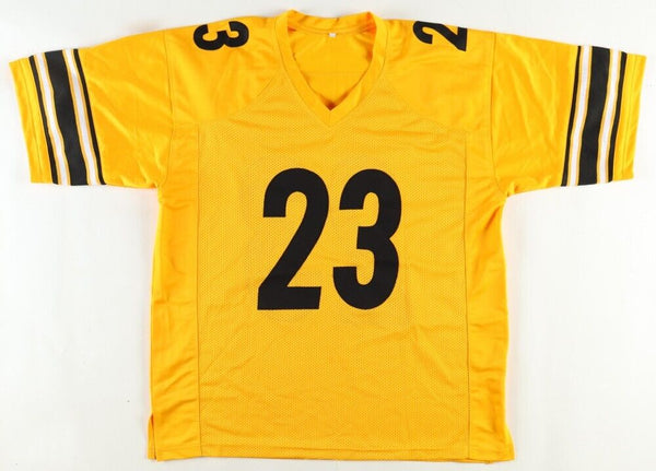 Custom on-field style jersey. Everything is sewn on, size Adult XL. Has been hand-signed by Joe Haden.The lot / autograph(s) includes an official Beckett Authentication Services serially numbered hologram for authenticity purposes. The signing of this item was witnessed by Beckett.Authentication: Beckett HologramCustom on-field style jerseys are a more affordable option for autograph seekers. These jerseys do not have any brand name or tags and are made in the Philippines. They feature stitched on names and numbers and are made to look very similar to the on-field jerseys that the players wear. These custom jerseys are very commonly used in the memorabilia industry.