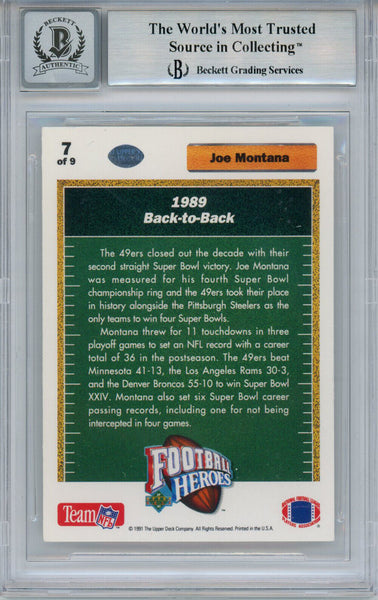 Joe Montana Autographed 1991 Upper Deck #7 Trading Card BAS 10 Slab 34639