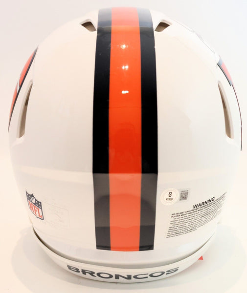 John Elway Broncos White Snowcapped Pro Helmet Elevate your collection with this John Elway Broncos White Snowcapped Pro Helmet What Makes This Special: John Elway Signature - Hall of Fame quarterback and Broncos legend White Snowcapped Design - Unique white design Professional Helmet - Official Denver Broncos Pro model Beckett COA - Authenticated for guaranteed authenticity Excellence & Elegance - Design represents the legendary player's legacy The John Elway Legacy: John Elway embodies Denver Broncos greatness, leading the franchise to five Super Bowl appearances and two championships. His leadership and clutch performances in the Mile High City made him a legend whose excellence matches the majestic peaks surrounding Denver. Authenticated by Beckett COA, the iconic design represents excellence and elegance, just like the legendary player himself. A must-have for any fan, this helmet is a true testament to the artistry and skill of the game.