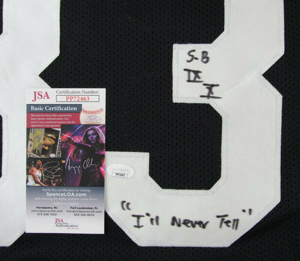 Custom on-field style jersey. Everything is sewn on, size XL. Hand-signed and inscribed in black felt tip pen by John Fuqua.Things looked bleak for the Steelers late in the 1972 AFC Divisional Playoff Game vs. the Oakland Raiders, because backup quarterback Ken Stabler had run 30 yards for a touchdown that gave his team a 7-6 lead with just 1:17 to play. Soon afterward, quarterback Terry Bradshaw and the rest of the Steelers offense were looking at a fourth-and-10 from the 40-yard line with just 22 seconds remaining. and desperately searching for the team's first ever playoff, it didn't look promising. But they never gave up. While under pressure Bradshaw through the ball in the direction of Frenchy Fuqua and as it arrived, he collided with Raider's safety Jack Tatum, and the ball ricocheted back, and Franco Harris miraculously scooped it out of the air and took off running for a 60-yard touchdown reception that gave the Steelers the 13-7 win and a wild celebration ensued.The autograph includes an official James Spence Authentication (JSA) hologram and matching COA for authenticity purposes.Authentication: JSA COA