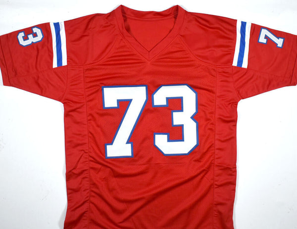 John Hannah Autographed Red Pro Style Jersey w/HOF - Prova *Black THIS IS NOT AN NFL JERSEY. THIS HAS NO TAGS, NO LOGOS, NO EMBLEMS. This is a Hand Autographed Jersey of John Hannah. Inscribed HOF. This is Custom Made (Non Name Brand) Authentic Style (Stitched Letters and Numbers). This item has a Prova Authentication, which Comes with a #'ed Prova hologram. You can view this item on the Prova website. It was signed either at a public autograph appearance or a Private Signing. This is a stock photo of the item. Although you may not receive this exact item, the item you receive is virtually identical and brand new in great shape. Jersey size is XL.