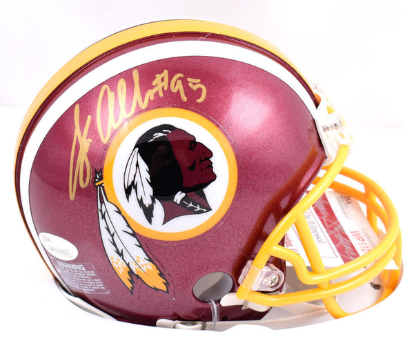 Jonathan Allen Autographed Washington Mini Helmet- JSA W *Gold This is a hand autograph of Jonathan Allen of the Washington Football Team on a Riddell Football Mini Helmet. This item has a James Spence Witnessed Authentication, which comes with a numbered sticker hologram and a matching JSA Card. You can view this item on the JSA website and it shows when and where the item was signed. It was signed either at a public autograph appearance or a private signing. This is a stock photo of the item. Although you may not receive this exact item, the item you receive is virtually identical and brand new in great shape.