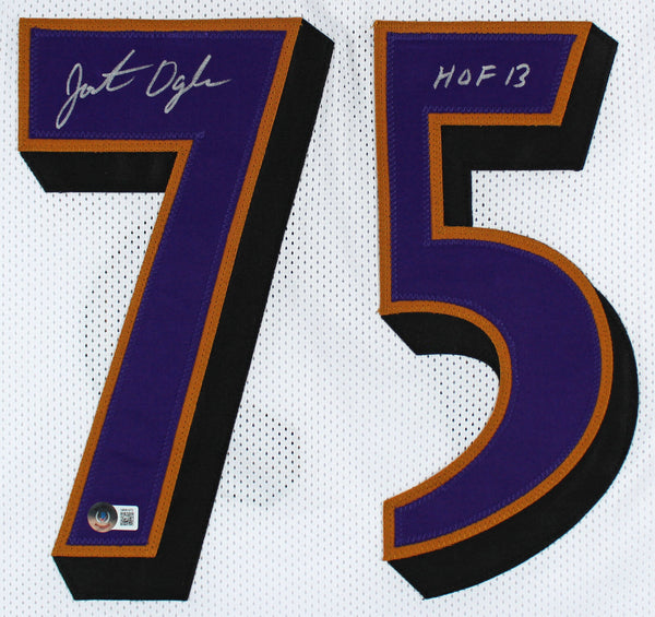 Jonathan Ogden "HOF 13" Authentic Signed White Pro Style Jersey BAS Witnessed