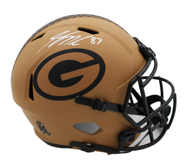 A Green Bay Packers Speed Replica Salute To Service 2 NFL Helmet Signed by Jordy Nelson. The item and signature are in excellent condition. Jordy is a former NFL wide receiver, he was picked 2nd round in the 2008 NFL Draft by the Green Bay Packers. Super Bowl XLV Champion, Pro Bowler, 2016 NFL Comeback Player of the Year, 2017 Best Comeback Athlete ESPY Award, 2016 NFL receiving touchdowns leader. AUTHENTICATION: The item has been tagged with a SmarTag powered by Prova Technology, which gives you digital access to the items authentication records, including a proof picture from the signing.