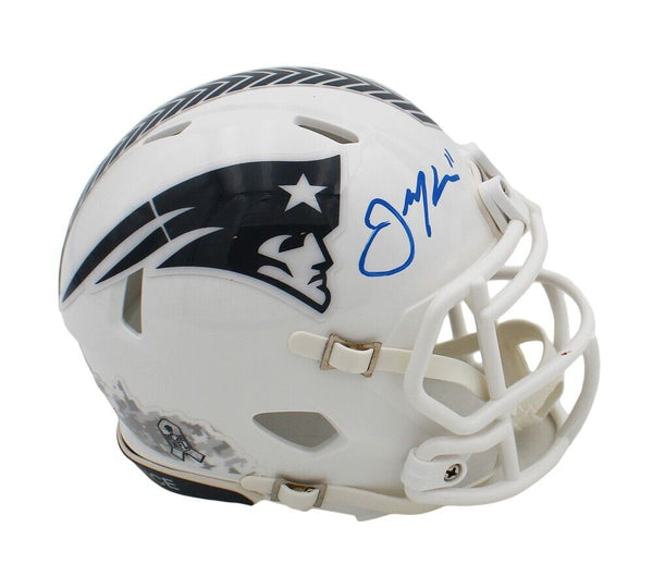 A New England Patriots Speed Salute to Service 3 NFL Mini Helmet hand signed by Julian Edelman. The item and signatures are in excellent condition. Edelman was drafted into the NFL in 2009 round 7 pick 232, and is a 3x Super Bowl Champion. AUTHENTICATION: The item is accompanied by a JSA Certificate of Authenticity - JSA Serial Numbered Hologram -