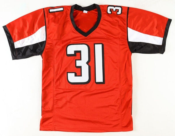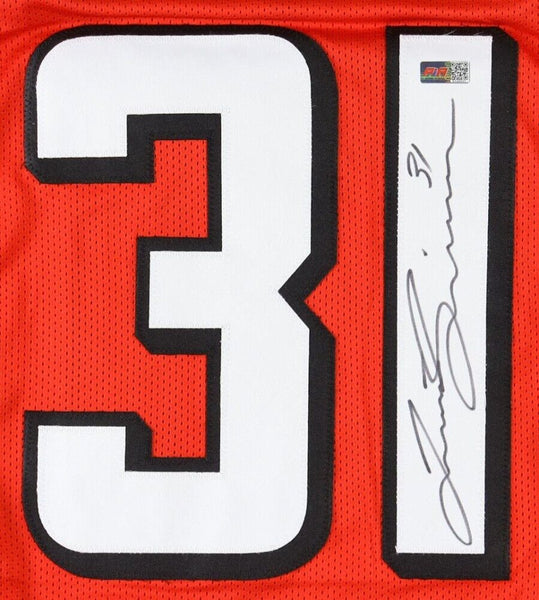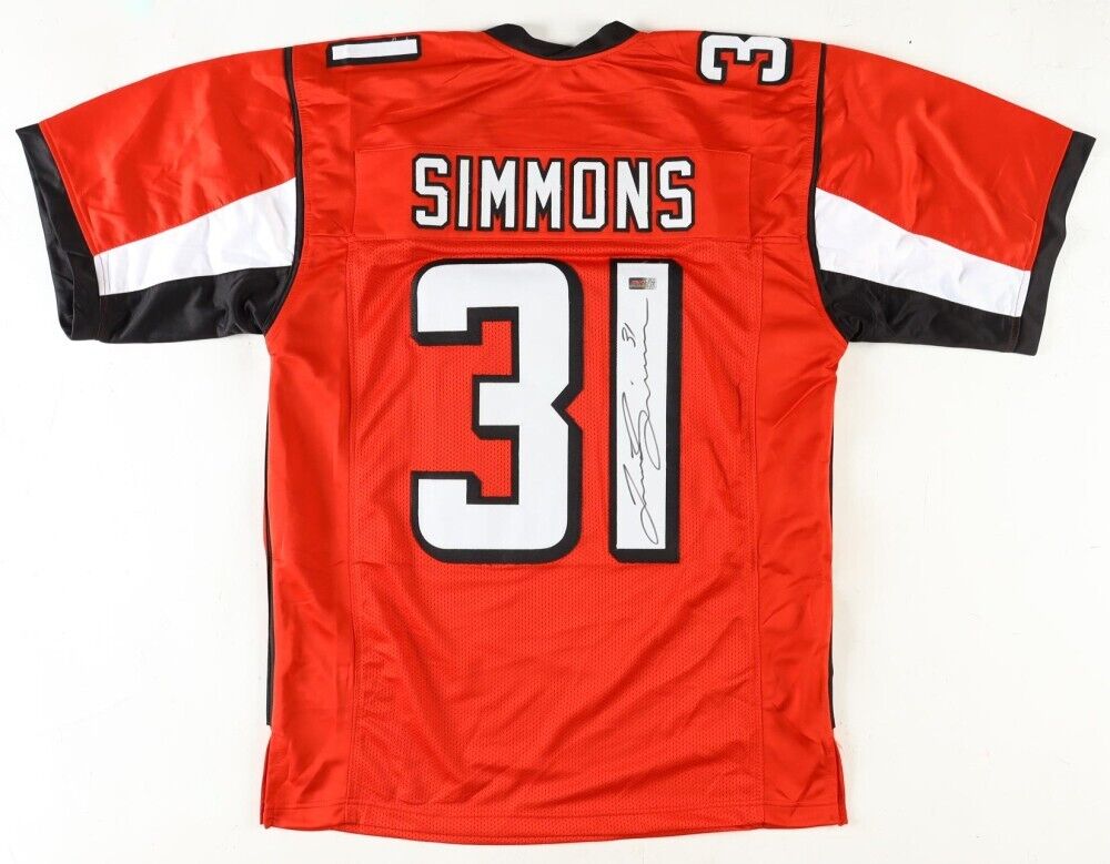 Custom on-field style jersey with everything sewn on, size XL. Hand-signed by Justin Simmons.The lot / autograph(s) includes an official Players Ink Authentication hologram for authenticity purposes.Authentication: PIA HologramCustom on-field style jerseys are a more affordable option for autograph seekers. These jerseys do not have any brand name or tags and are made in the Philippines. They feature stitched on names and numbers and are made to look very similar to the on-field jerseys that the players wear. These custom jerseys are very commonly used in the memorabilia industry.