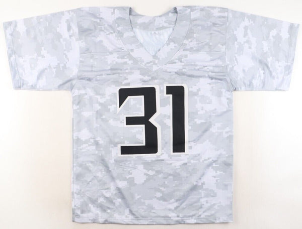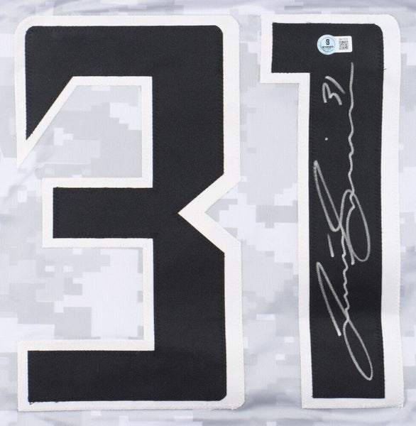 Custom on-field style jersey. Everything is sewn on, size XL. Hand-signed by Justin Simmons The lot / autograph(s) includes an official Beckett Authentication Services serially numbered hologram and QR Code card for authenticity purposes. The signing of this item was witnessed by BeckettAuthentication: Beckett Hologram with QR code card