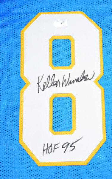 Kellen Winslow Autographed Light Blue Pro Style Jersey w/ HOF-Beckett W Hologram *Black THIS IS NOT AN NFL JERSEY. THIS HAS NO TAGS, NO LOGOS, NO EMBLEMS. This is a hand autograph of Kellen Winslow on a Custom Made (non name brand) Authentic Style Jersey with stitched letters and numbers. Inscribed HOF. This item has a Beckett Witnessed Authentication, which comes with a numbered hologram and a QR code for verification. You can view this item on the Beckett Authentication website and it shows when and where the item was signed. It was signed either at a public autograph appearance or a private signing. This is a stock photo of the item. Although you may not receive this exact item, the item you receive is virtually identical and brand new in great shape. Jersey size is XL.