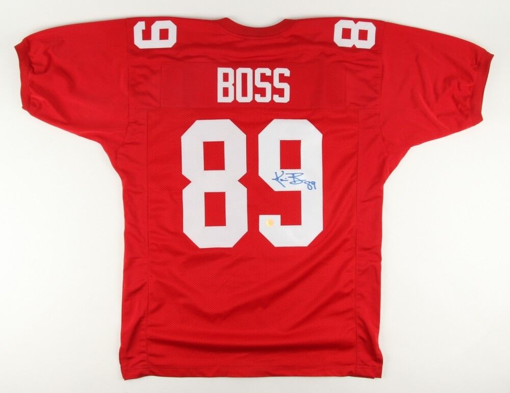 Custom on-field style jersey. Everything is sewn on, size XL. Hand-signed in blue felt-tip pen by Kevin Boss (Raiders, Chiefs) The Gridiron Legends hand signed item accompanied by this Certificate of Authenticity has been affixed with a unique serial numbered tamper-proof hologram. Any alterations of this hologram deem the authenticity of this item null and void. The autograph on this item was witnessed in person by a Gridiron Legends representative.Authentication: Gridiron Legends COA
