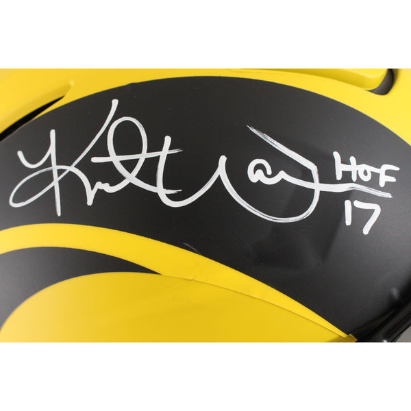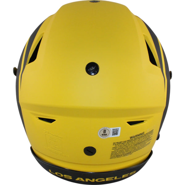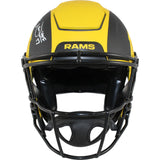 The number in the listing title is just an inventory sku for our records and is not the authentication number. The item pictured is a stock photo unless otherwise noted. This is a Los Angeles Rams Full Size SpeedFlex Rave Helmet that was personally autographed by Kurt Warner includes "HOF" inscription. Includes a certificate of authenticity from Beckett Authentication Services (BAS) and Denver Autographs.FREE SHIPPING within the USA on orders over $10!